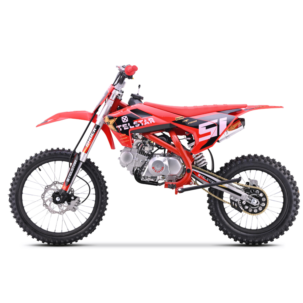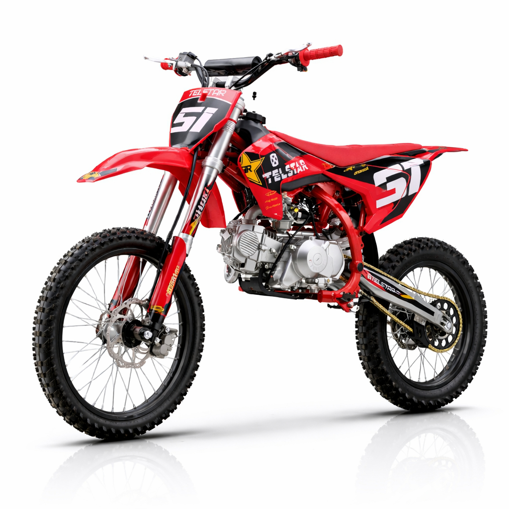 Новият TELSTAR JUBILE CROSS 160cc е висококачествен кросов мотор, вдъхновен от дизайна и геометрията на GAS GAS, създаден за офроуд каране, тренировки и хоби мотокрос. Моделът комбинира агресивна визия, здрава рама и надежден 4-тактов двигател, който предлага отличен баланс между мощност и контрол.