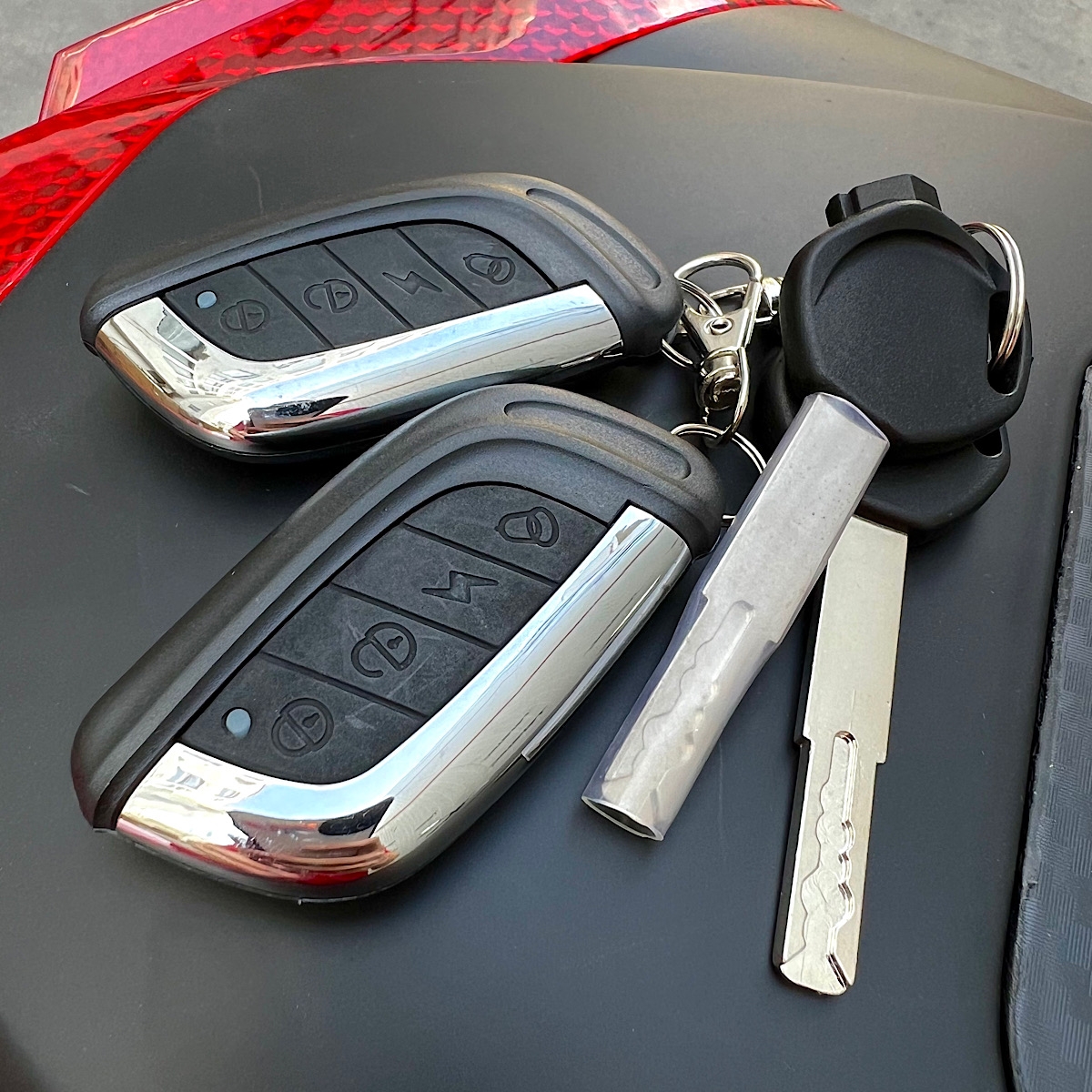 *ПОДАРЪЦИ при закупуване: комплект огледала за задно виждане и 2 бр. дистанционни към ключа с аларма и имобилайзер, -USB- ,с функция безконтактно запалване, допълнително заключване на кормилото против кражба