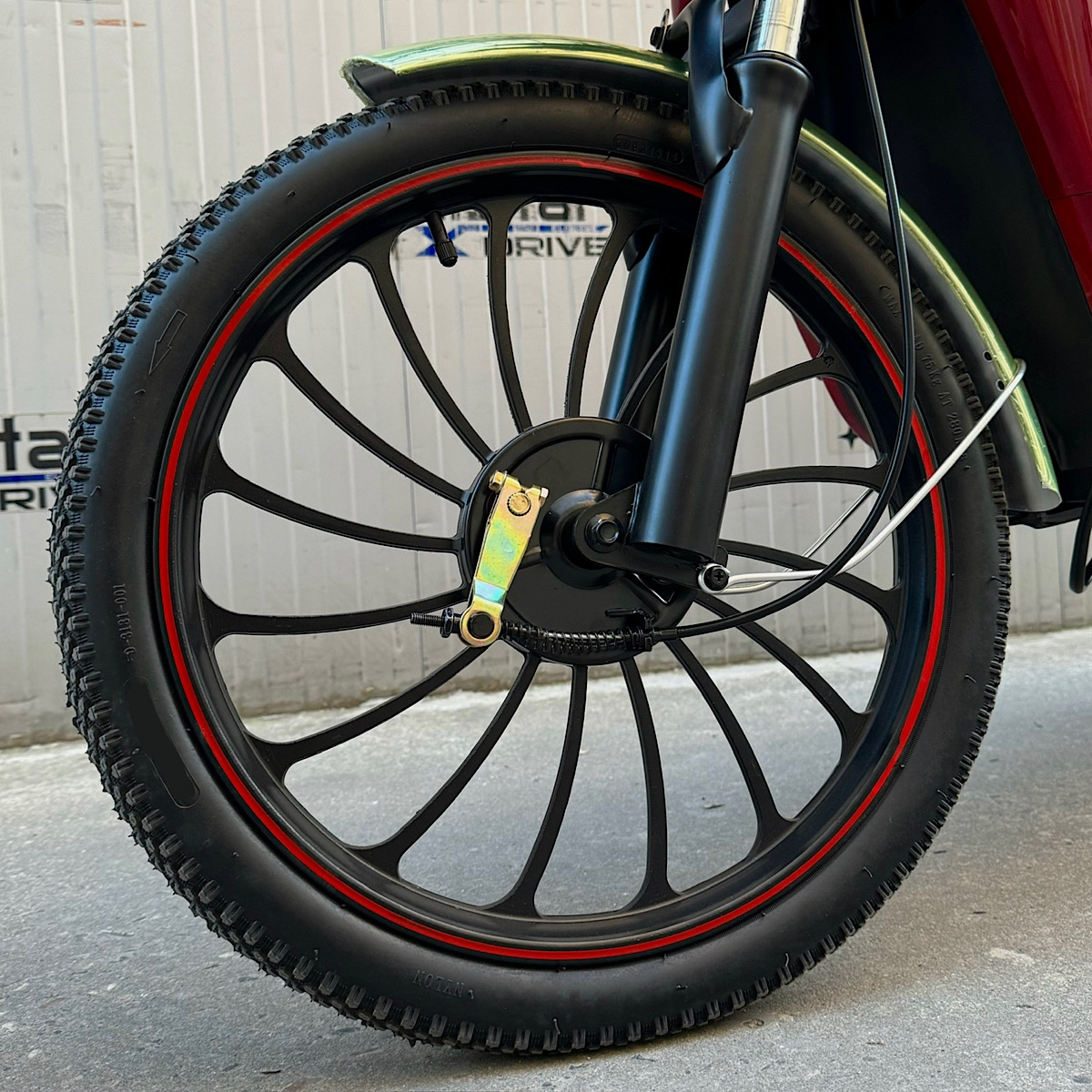 | Допълнителна информация | - Луксозна окомплектовка: мигачи със звукова сигнализация - Дигитален LCD дисплей с 5 параметъра - Сгъваеми степенки - Облегалка задната седалка - три скорости - предна и задна спирачка - големи балонни OFFROAD гуми - мигачи - стоп - багажно джобче на рамката - LED светлини на рамката - верига и педали - предни - задни амортисьори с голям ход - мощен LED преден фар - удобни кожени предна и задна седалка с облегалка - задната седалка се превръща в карго отделение за багаж - клаксон - зарядно устройство специално за батерията *При закупуване- ПОДАРЪК: огледала за задно виждане (2бр.) дистанционно с аларама (2бр.) метална кошница за пазар с капак |