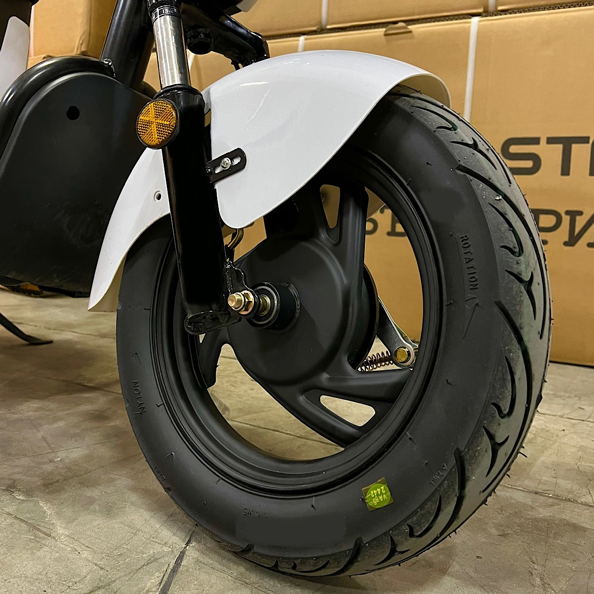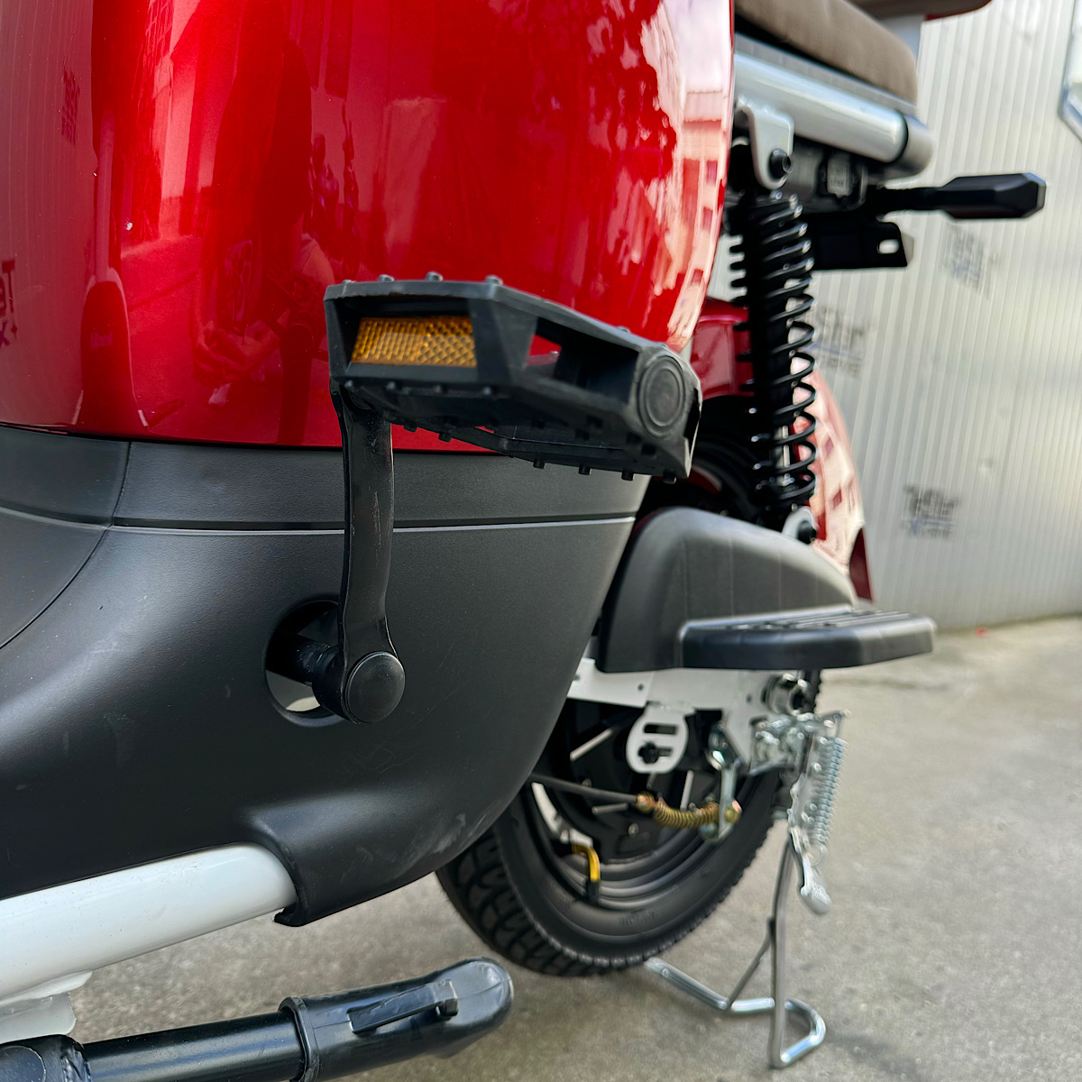 Допълнителна информацияЛуксозна окомплектовка: мигачи със звукова сигнализация, дигитален LCD дисплей с 5 параметъра, сгъваеми степенки, облегалка задната седалка- три скорости - предна и задна спирачка - големи балонни гуми - мигачи - стоп - багажно - супер олекотен - верига и педали - предни - задни амортисьори - мощен LED преден фар- удобни кожени предна и задна седалка с облегалка - клаксон *При закупуване- ПОДАРЪК: огледала за задно виждане (2бр.) дистанционно с аларама (2бр.) металма кошница + ключ с фенерче