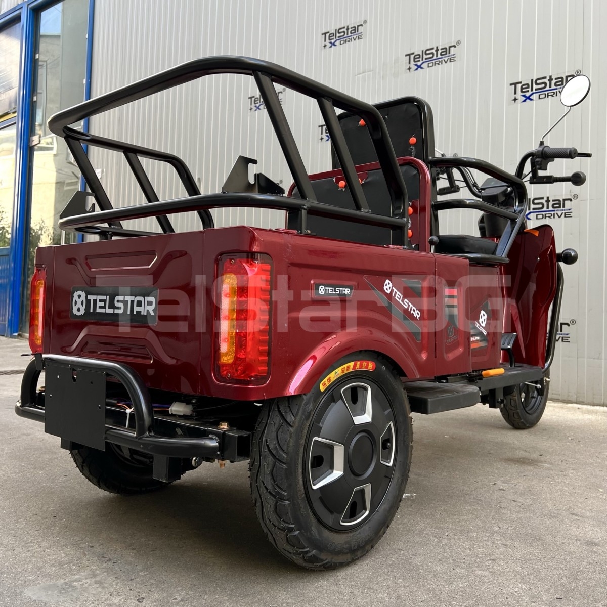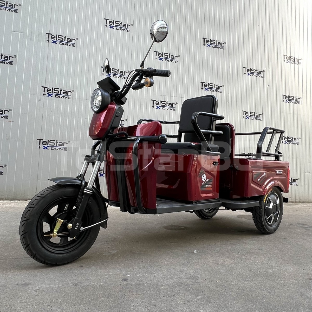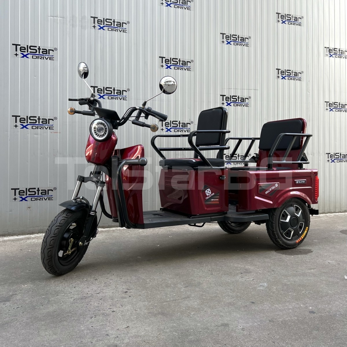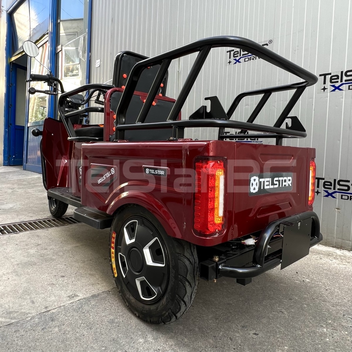 Оригинална електрическа триколка- две места + карго отделение с изключително висококачествена изработка. Задната седалка се превръща в удобно карго багажно отделение с 1 движение. Прахово нанасяне на боята по електролитна технология. Триколката се предлага и във вариант със лесна за монтаж и демонтаж покривна конструкция.