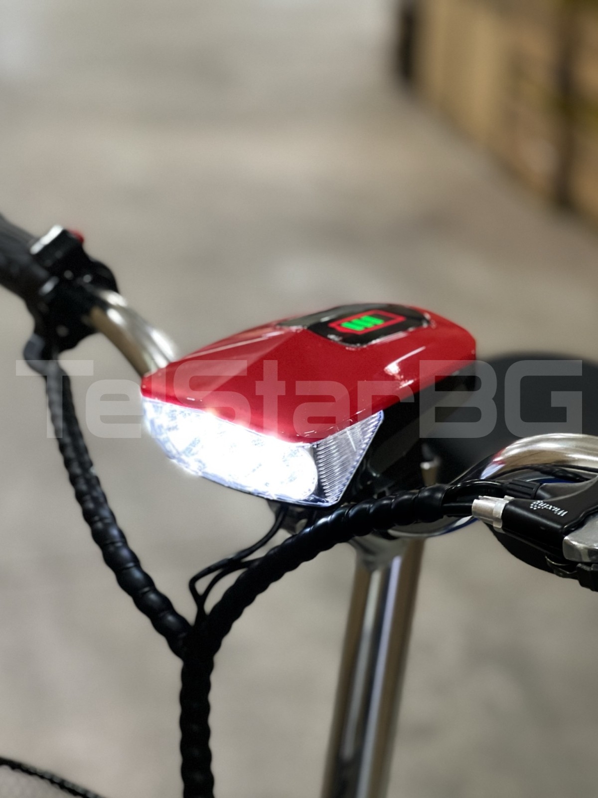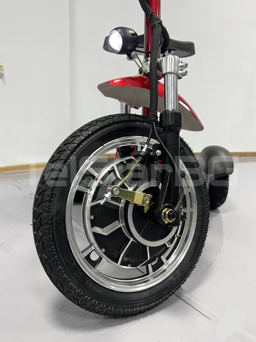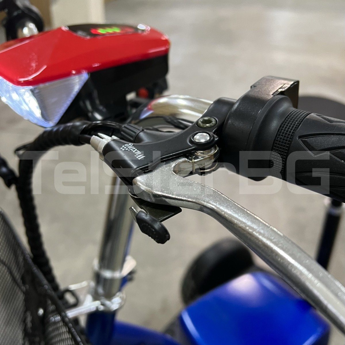 регулируемо кормило - три предни + 1 задна скорост - зарежда се от мрежата: 220V (зарядното е включено в комплекта) преден LED фар с индикатор за нивото на батерията + дисплей с показание ниявото на батерията ръчна спирачка