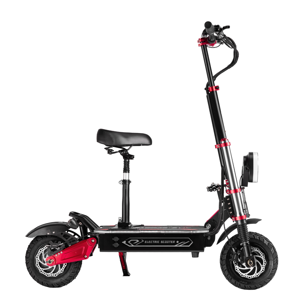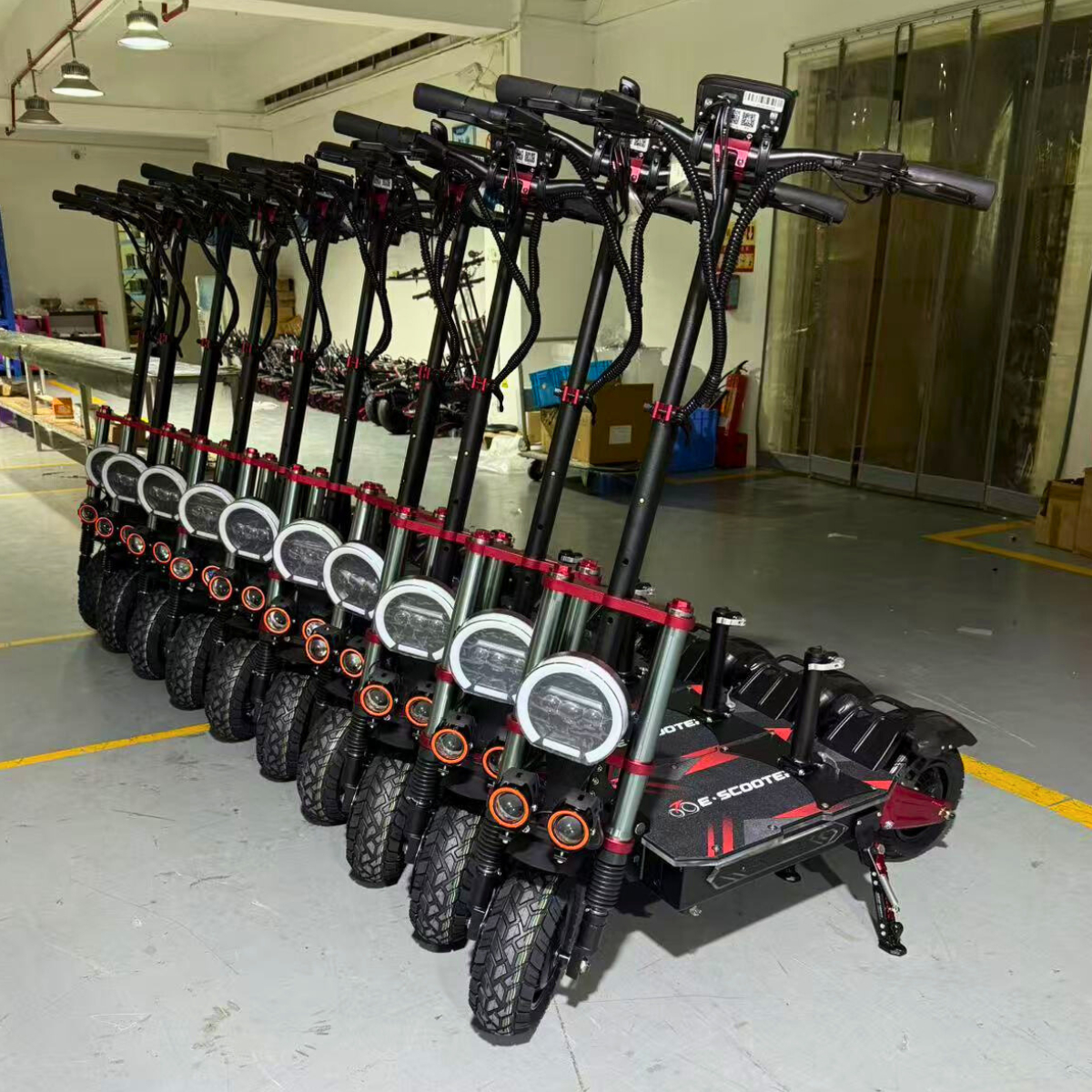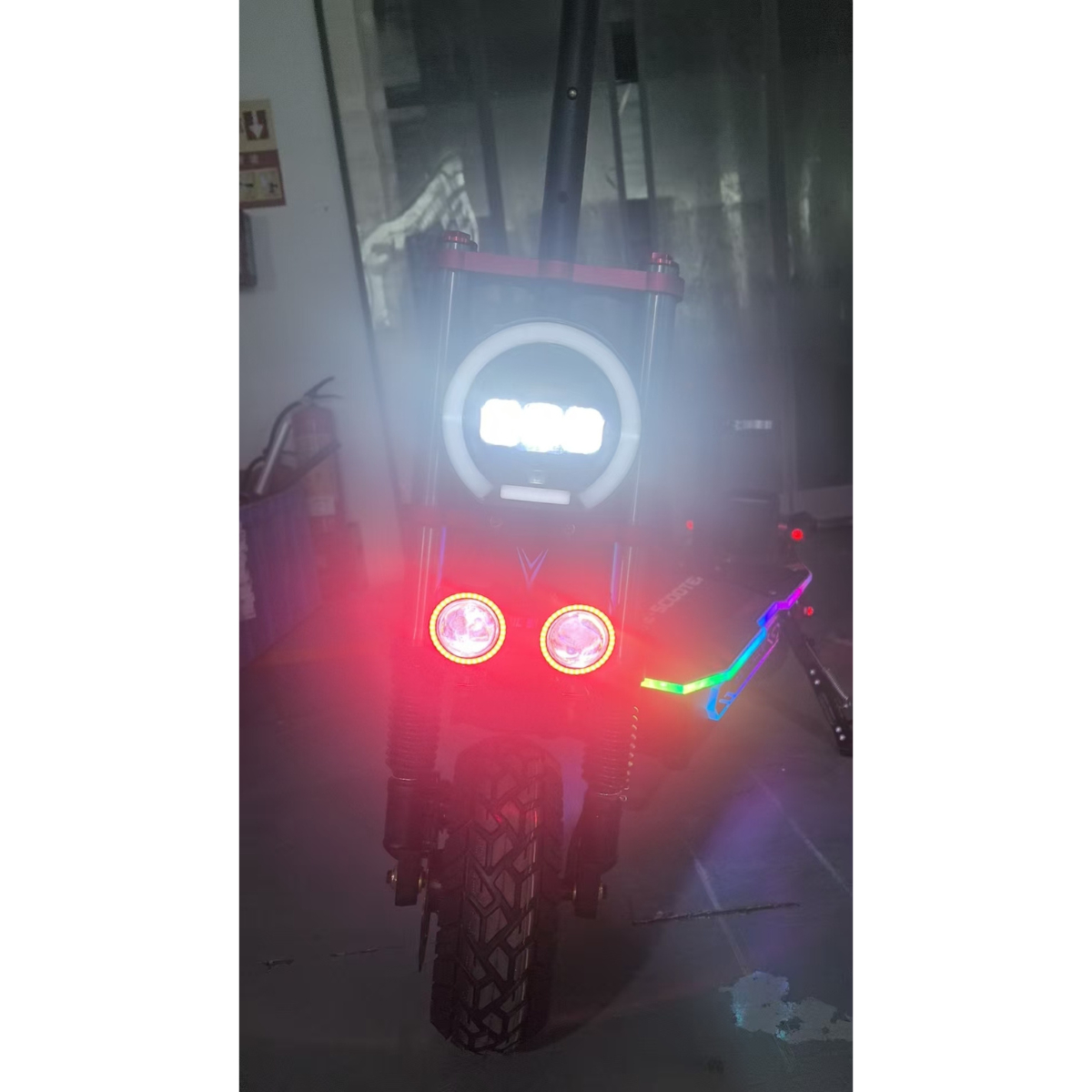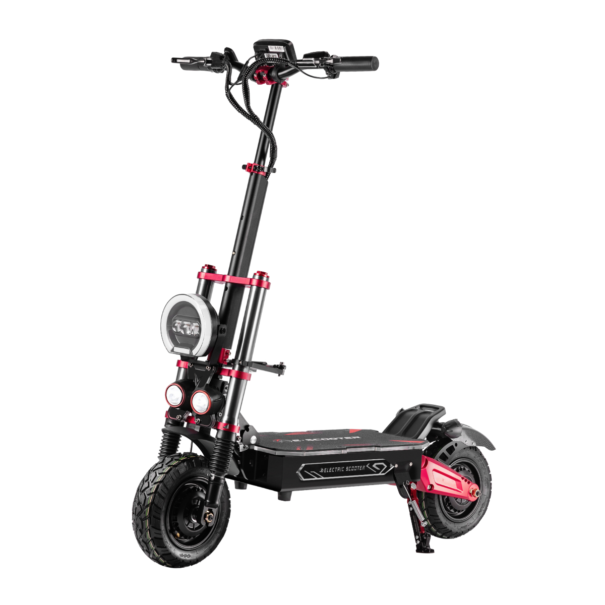 Високопроизводителна електрическа тротинетка с 2×3000 W мотора и батерия 60 V 38 Ah, осигуряваща пробег до 120 км. Създадена за офроуд приключения – с 11″ гуми, хидравлично окачване и здрав алуминиев корпус, тя предлага мощ, стабилност и комфорт на всякакъв терен. Това е излючително престижен скутер, който съчетава свободата и удобството на карането със способността за по-бързо придвижване в градски условия и офроуд терен.