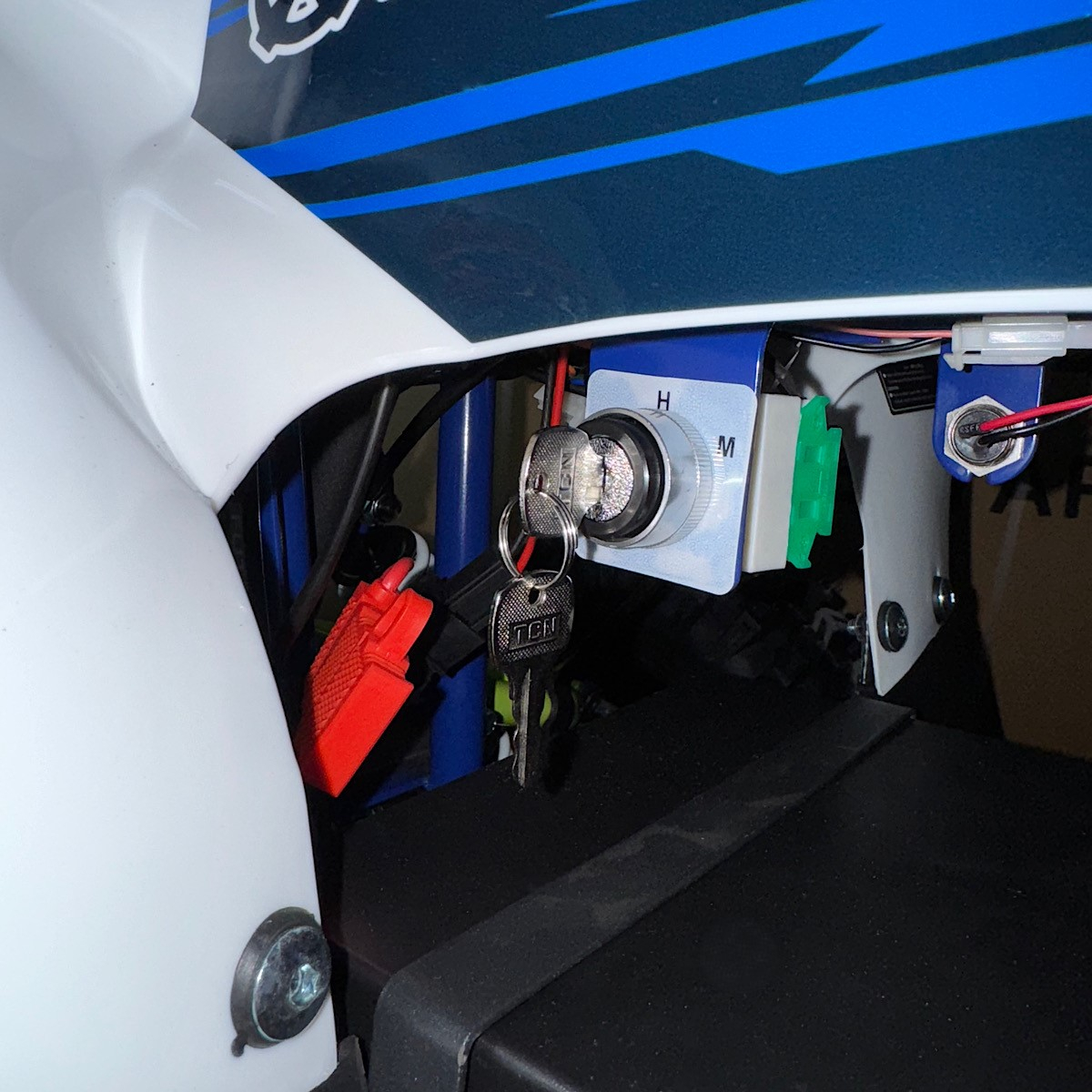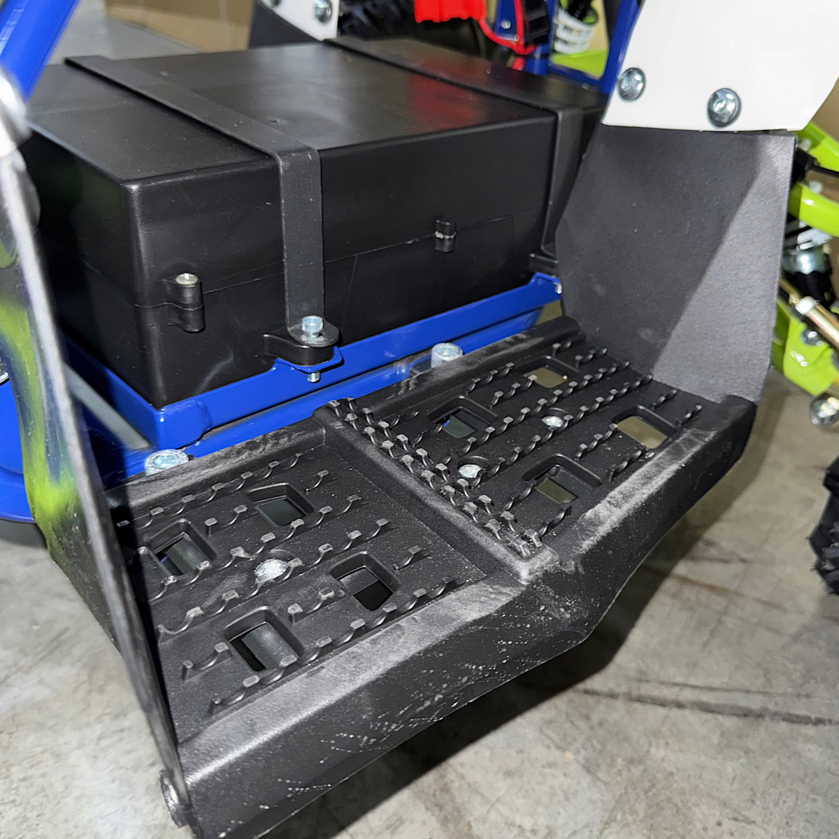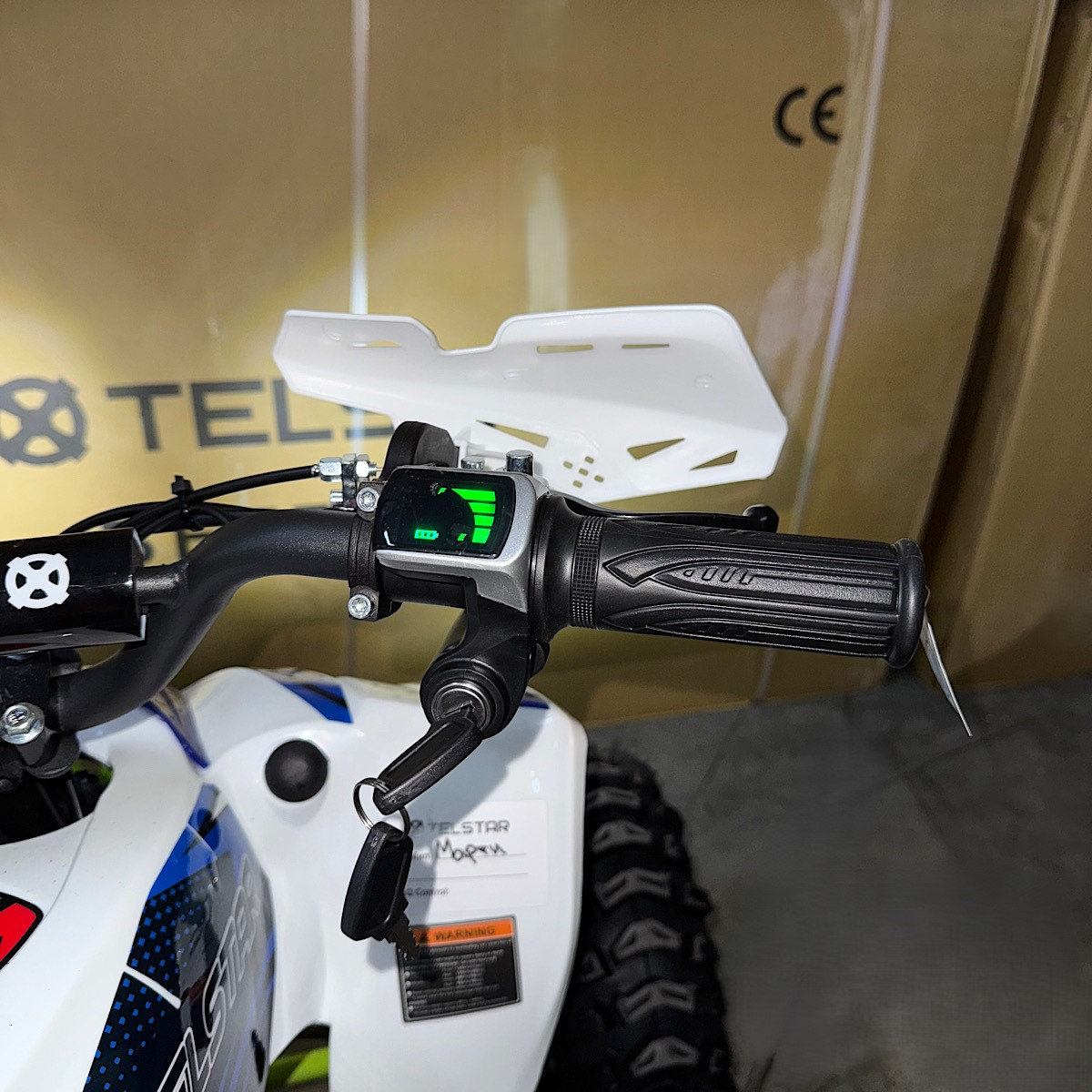 Допълнителна информация- LED предни фарове - светещ дигитален дисплей с показание за ниво на батерията - подаване на газ с дръжка (масур) - спирачна система: предни дискови, задна дискова спирачка - тристепенен родителски контрол за ограничаване на максималната скорост с ключ - клаксон - окачване с шарнири, не с втулки - задна скорост - височина на седалката: 55см. - зарядно специално за батерията