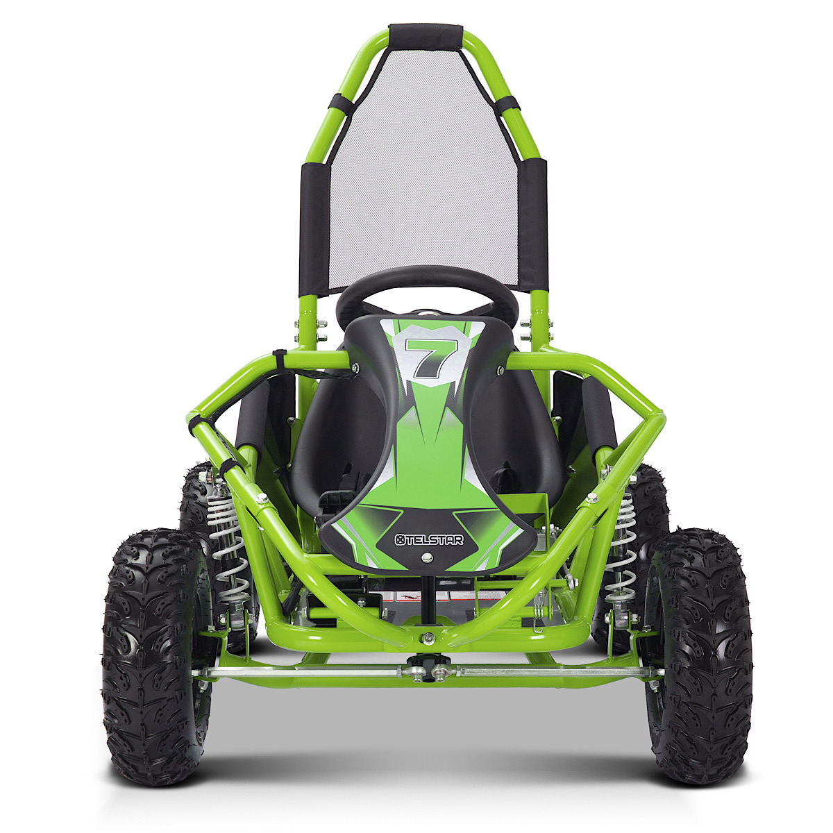 TelStar Kart-08 48V е стабилно и безопасно детско електрическо ATV бъги, създадено за приключения на открито. С удобна седалка, предпазна рамка и офроуд гуми, моделът предлага сигурност и забавление върху различни терени – трева, чакъл или асфалт. Лесно за управление и проектирано специално за деца.